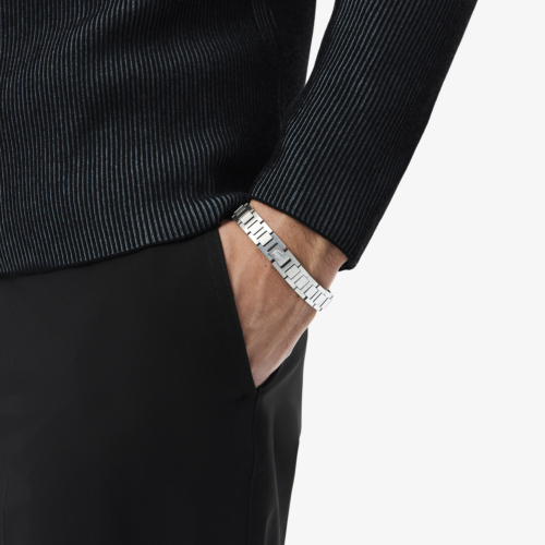 Früher waren dicke Leder- und Metallarmbänder im Trend, während aktuell minimalistische, raffinierte Armbänder getragen werden. Was gut funktioniert, ist es, zwei Schmuckstücke mit unterschiedlichen Texturen miteinander zu kombinieren. So kann ein Metall Manschettenknopf gut zu einem Lederarmband passen. Alles in Silber zu halten, kann schnell überwältigend wirken.